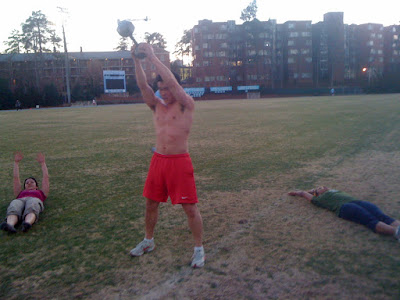 After yesterday's experience with "Karen," my legs were (are!) completely shot. It was with great joy that I found out that today would be an upper-body beat down! It's almost like old-school body building over here...just a little less ridiculous/impressively insane. (For the record, if you ever meet me and talk to me, you'll at first think I hate and mock body-building incessantly. The reality is that I *only* mock it in terms of absolute strength AND conditioning. In terms of hard work, dedication, and frankly, impressive results, I think there's actually a LOT that CrossFitters/high-intensity interval trainers can take away from body building.)